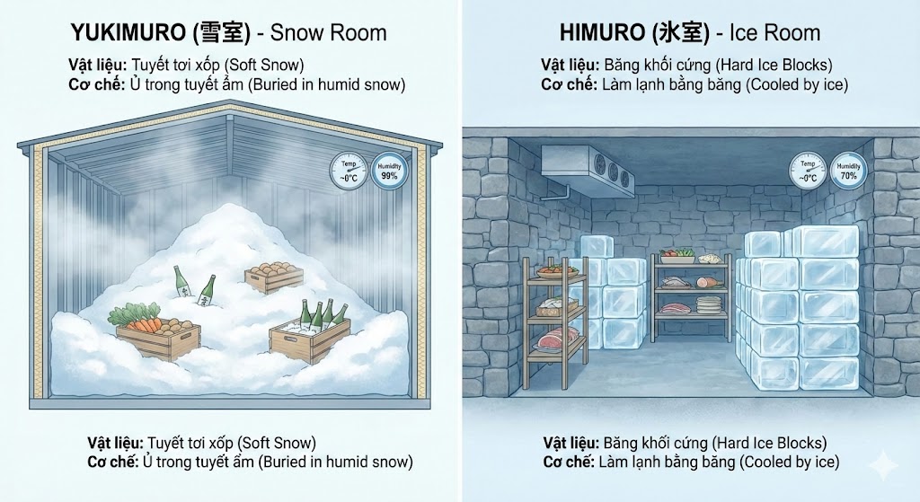 Himuro là nơi lưu trữ băng đông, dễ quản lý nhiệt độ và thường dùng ở các thành phố.