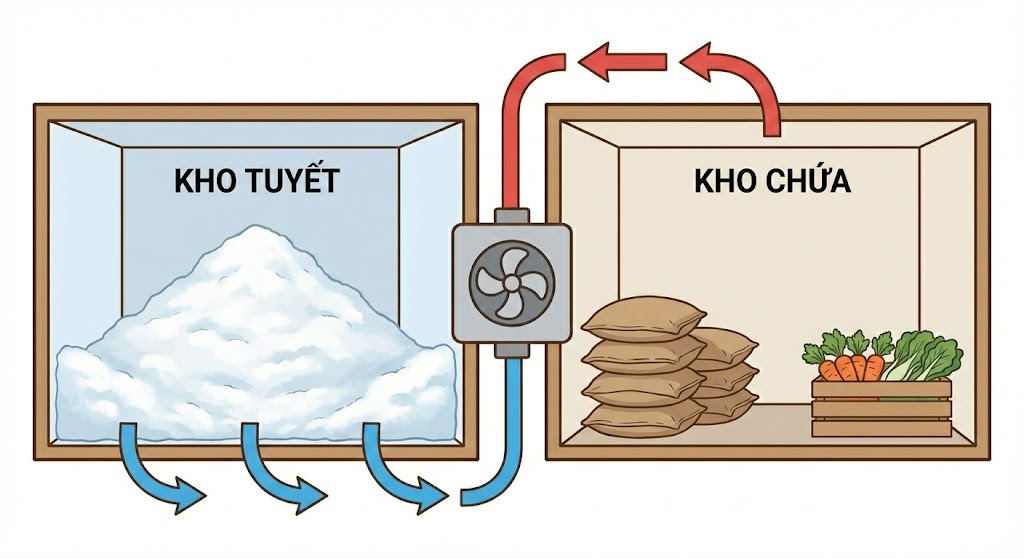 Nhờ tính dẫn nhiệt thấp và cấu trúc tinh thể của tuyết, không khí lạnh được giữ lâu, thực phẩm an toàn ngay cả mùa hè.
